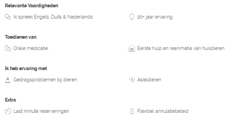 Les gardiens d'animaux de compagnie chez Pawshake doivent avoir 18 ans ou plus. Nous exigeons également que tous nos gardiens aient un fort sentiment de responsabilité. En termes concrets, cela signifie avoir des ententes claires avec les propriétaires d'animaux et les respecter. Le bien-être des animaux doit être votre priorité numéro un et vous devez savoir quoi faire en cas d'urgence. Vous attachez une grande importance à la sécurité et respectez les «valeurs de la bonne gardienne d'animaux de compagnie». Vous ne respectez pas seulement l'étiquette du chien par exemple, mais vous vérifiez en outre à faire en sorte que tout, dans et autour de la maison du propriétaire, soit comme il se doit lors d'une visite. Et, vous traitez toujours chaque réservation via Pawshake: de cette façon vous savez que vous êtes assuré. Si vous êtes propriétaire d'un animal et que vous voulez être certain que vous avez affaire à une gardienne de confiance, merci de vous référer à nos listes de vérification ci-dessous: